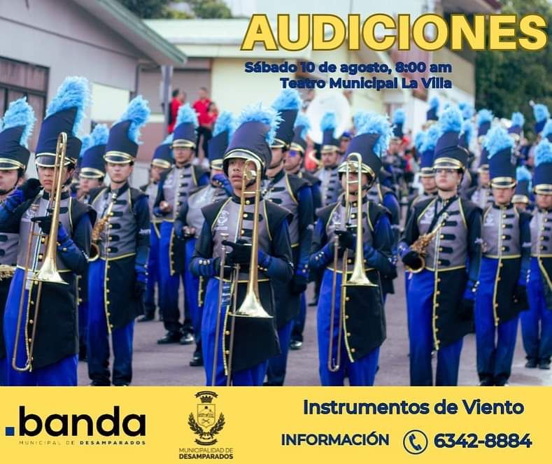 Para más información sobre los requisitos y el proceso de audición, los interesados pueden visitar la página oficial de la Banda Municipal de Desamparados o comunicarse al 6342-8884.