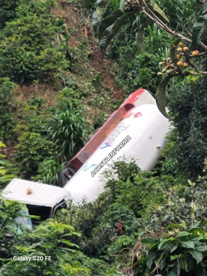 Un camión cisterna cargado con 10.200 litros de gas licuado de petróleo (GLP) cayó a un precipicio en Desamparados, San José.